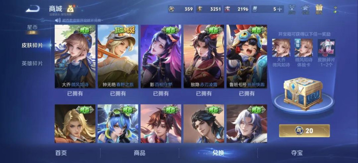 不外,本周倒是会有一个新获取碎屑的门道;即是通过王者天下的行为,获取到皮肤巧合礼包,当礼包内的作品皆取得时,便不错拿到皮肤碎屑*20。