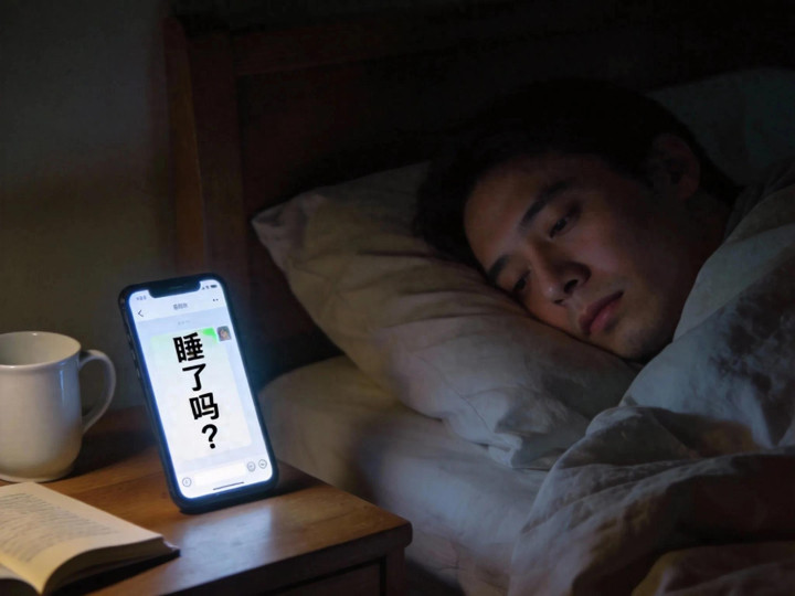 凌晨两点,手机屏幕亮了。是丈夫发来的微信,只须三个字:"睡了吗?"