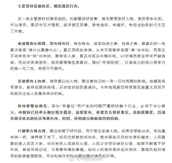 这一条主如果针对演员说的。长剧要讲好故事,率先要塑造好东谈主物,演员工作光荣。行为演员,要效用艺术理思,追求德艺双馨,作念有信仰、有心扉、有担当的新期间文艺工作者。