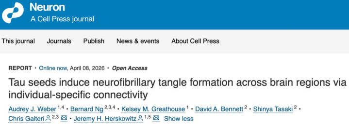 [1].Weber et al.轮盘游戏, Tau seeds induce neurofibrillary tangle formation across brain regions via individual-specific connectivity, Neuron (2026), https://doi.org/10.1016/j.neuron.2026.03.001