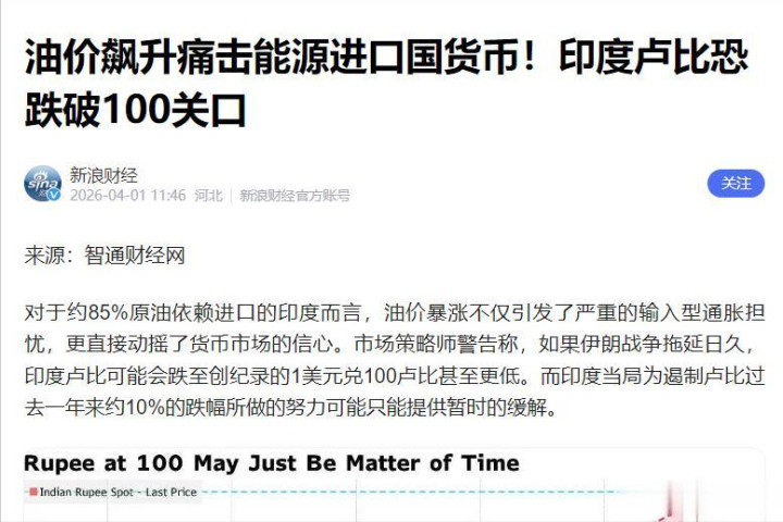 罕有据夸耀,2026年1月,印度入口原油均价才63.5好意思元一桶,到了4月1日,就涨到了120.84好意思元一桶,不到三个月,涨了快一倍,这其中,印度我方的有蓄意装假,占了一泰半。