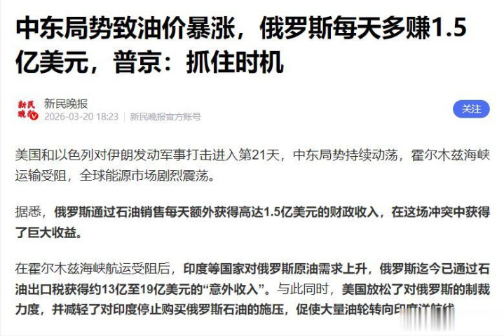 没主义,它只可回头求俄罗斯,思多买点头油,可这期间的俄罗斯,也曾不是之前阿谁急着卖油的俄罗斯了。