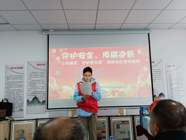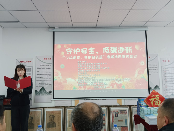 2026年2月3日上午9时30分,包头市昆区昆北街道海威社区举办环保视角下烟花爆竹管理主题讲座,特邀陆海霞老师主讲,社区居民、青少年代表齐聚一堂,共探传统民俗与生态环保、安全文明的融合路径。