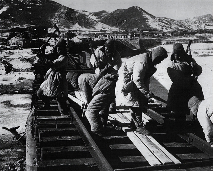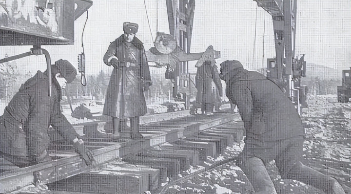 在鸭绿江边,第一条稽察性的“举止铁路”初始动工。