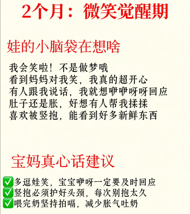 到了第二个月,宝宝迟缓发现,原本我方有两个能动的肉球叫“手”。他会盯入部下手指看很久,大概在说“这是什么东西,真实随着我动”。第三个月,他运行对周围的一切充中意思,一张小脸、一个吊唁挂饰齐能让他笑出声,他会死力抬入手,思望望除了天花板,这个全国还有什么。