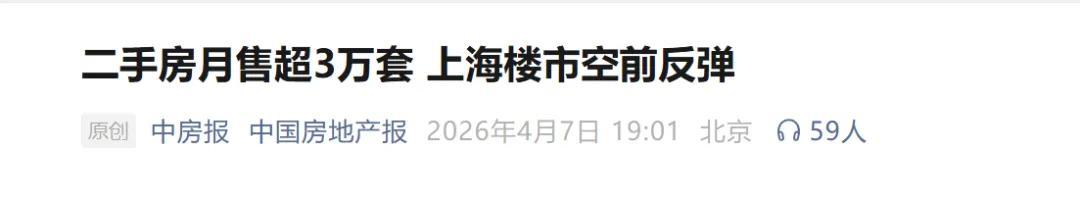 最近主流媒体皆在说3月份的二手房市集如何火热,比如《中国房地产报》今天发著作说上海二手房月销量冲突3万套,上海楼市空前反弹。