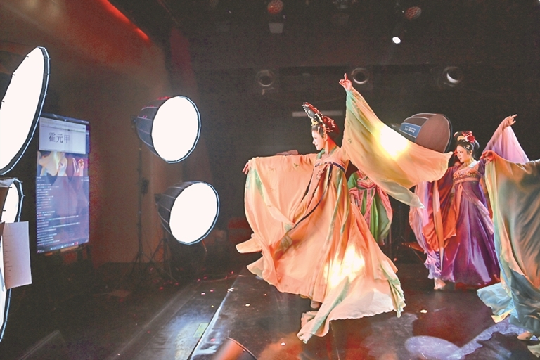 优秀传统文化题材创作,为网罗文艺注入优质资源。图为跳舞演员在直播间扮演。新华社发